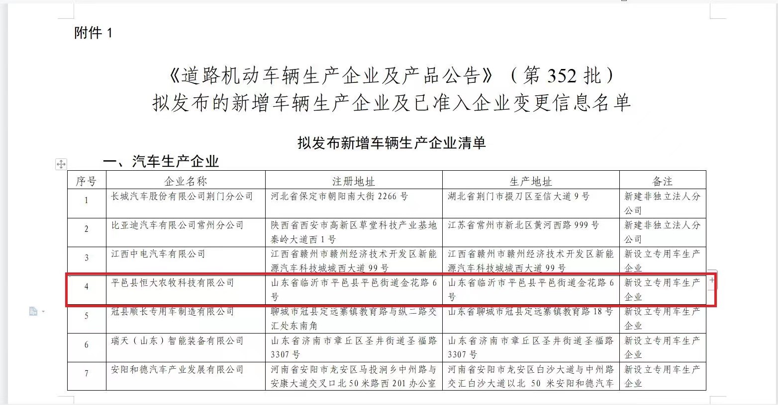《道路機(jī)動車輛生產(chǎn)企業(yè)及產(chǎn)品公告》(第352批)擬發(fā)布的新增車輛生產(chǎn)企業(yè)及已準(zhǔn)入企業(yè)變更信息名單