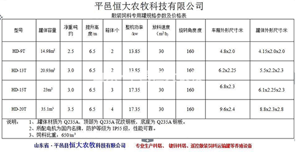 恒大公司生產(chǎn)的自動化散裝飼料運輸罐,采用、電動、遙控兩種控制卸料系統(tǒng)、上、下、左、右、旋轉(zhuǎn)。一流研發(fā)團隊。采用世界先進數(shù)控設(shè)備生產(chǎn)。保證了產(chǎn)品的數(shù)據(jù)誤差小、精密度高、設(shè)備穩(wěn)定性達到國際一流標準。原材料采用世界高端戶外猛鋼板,使用壽命長,、既方便、又靈活、不受車型限制、等優(yōu)點深受各界合作伙伴一致認可。